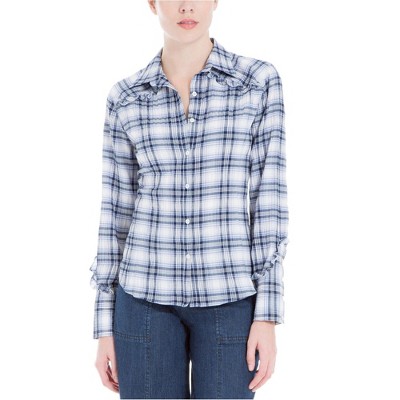 Embrace casual elegance with the Max Studio London Women's Ruffled Button Up Shirt. This button-down shirt, presented by Max Studio London, is more than just clothing – it's a reflection of modern style and sophistication. Crafted with care and attention to detail, this classic fit sleeveless shirt features a ruffled detail under the chest that adds a touch of femininity. The plaid pattern throughout lends a timeless charm, while the full button-down placket ensures a polished look for any occasion.