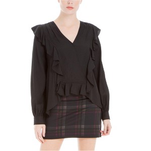 Elevate your casual look with the Max Studio London Women's Ruffled Knit Blouse. This knit blouse, presented by Max Studio London, is a testament to modern style and elegance. The V-neck collar and button closure at the front create a timeless look, while the ruffled detail with pleats at the yoke adds a touch of charm. Crafted from a blend of 55% Polyester and 45% Rayon, this blouse offers a medium weight that drapes beautifully.