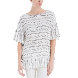 Elevate your casual ensemble with the Max Studio London Women's Striped Oversized Knit Blouse. This knit blouse, brought to you by Max Studio London, redefines comfort and style. The ruffled trim adds a touch of charm, while the allover striped pattern creates a dynamic and eye-catching look. Crafted from 100% Viscose, this blouse offers a medium weight that drapes elegantly.