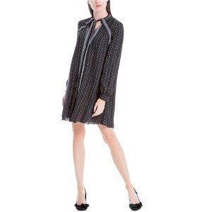 Elevate your wardrobe with the Max Studio London Women's Tie Front A-line Dress. This A-line dress, presented by Max Studio London, offers a blend of casual style and modern design. The two-tone pattern and printed details create a dynamic and eye-catching look, while the cloth ties at the front neckline add a touch of charm.