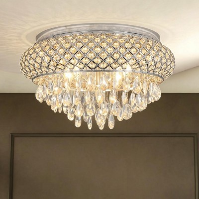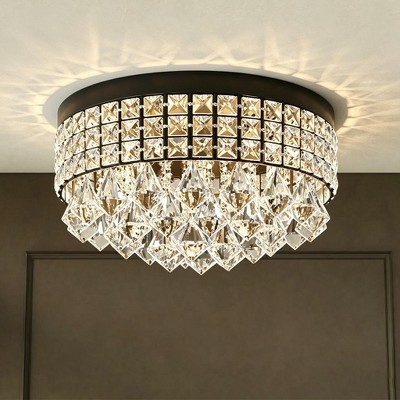 Maxax 15" Black Crystal Flush Mount Ceiling Light, 4-Light Dimmable Fixture ¨C Glam Statement Light for Bedroom, Entryway, Living Room