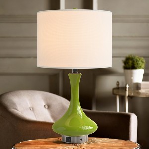 Bring a touch of modern elegance to your space with the Maxax 24" Green Ceramic Table Lamp. Designed with a sleek ceramic base and a soft fabric shade, this lamp adds both style and functionality to any room. The built-in USB-C and USB-A ports make it easy to charge your phone, tablet, or other small devices, keeping your nightstand or desk neat and organized. Perfect for bedrooms, living rooms, or home offices, this lamp provides a warm and comfortable glow for reading, relaxing, or working.