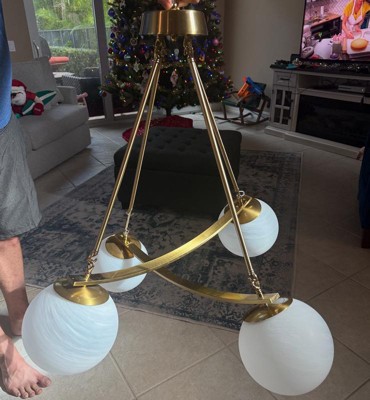 [This review was collected as part of a promotion.] The chandelier was well-packed and easy to assemble. Another great feature is the QR code on the instruction manual that links to a helpful video. I love the finish of this light, and the oversized glass balls add a stylish touch. However, I’ll need someone to install it because my ceilings are quite high. If you have low ceilings, it would be much easier to install.