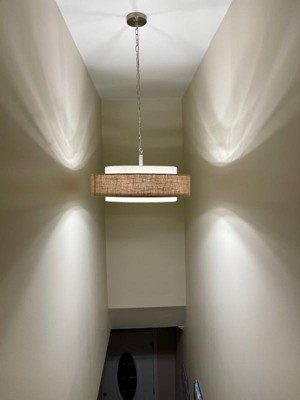 [This review was collected as part of a promotion.] Part of it may have been the location (our very high hall stairs) but lord this light was a pain to install. My husband is very experienced with these sorts of things and it took us a few hours. No instructions included (a card said to follow the QR code for a video but there wasn’t a QR code!) didn’t help. But it’s finally up and does look lovely. I was surprised that the fabric was sturdier than anticipated and it gives off quite a bit of light. So, end result is great, installation was a beast.
