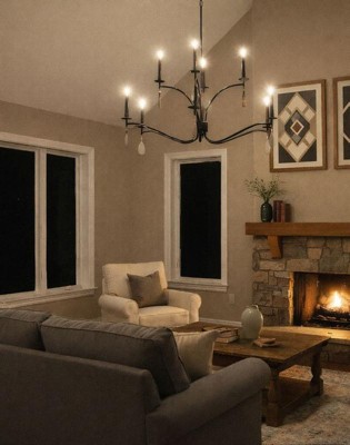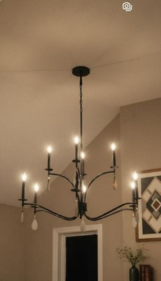 [This review was collected as part of a promotion.] Love this 8-light candle style modern farmhouse chandelier by Maxax. Its a black sprayed heavy wrought iron branch style design with sparkling crystal accents. Its very stylish and functional for any room or part of the house. I decided to put it up by the entry way to the front door. It took about an hour to install with the help of a an electrician. I really love how it gives a candle effect from a distance. Its a beautiful piece of decor the adds a touch of glamour to any area of the house. Highly recommend this product.
