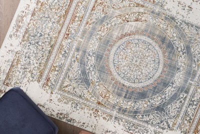 [This review was collected as part of a promotion.] Beautiful rug, we really like the look and style which perfectly matched our decor. Very well made, close attention to detail, and if properly cared for should last quite a while. It is a bit slippery specifically on shiny tile and even on wood floors. Other than that we are very happy with it.