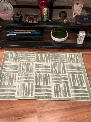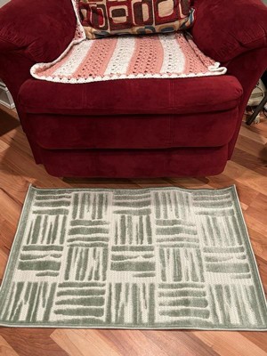 [This review was collected as part of a promotion.] This rug is so cute. Love the colors, how they made an unusual pattern. The base color is beige and the lines are green, maybe olive green. The bottom of it has a layer which won’t allow the carpet to slide or move. That’s a great feature because a sliding rug can be a cause a lot of injuries. We use it inside, because downstairs we have laminate and that is kinda cold at winter. It’s placed right now in front of the big fluffy chair where I sit and watch television. We could use it outside, in front of the front door but I already have a plastic rug there and I would be sorry to put this out on the weather, rain and wind. Easy to clean up the stains because it has an excellent stain resistance, making the rug ideal for us, with 3 small dogs. In front of my tv chair looks good and it brings the cozy and warm winter evenings back.