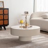 Maxax Round Coffee Table Handcrafted Relief Wooden Olive-Shaped Tea Table For Living Room