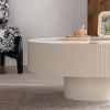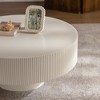 - 【Fashionable and Stylish】This coffee table adopts the common circular design in home decoration, with a circular tabletop and base. And it is a presentation effect with a large top and a small bottom. This coffee table features a stylish design, the unique mushroom shape with fluted design will effortlessly blend with your existing decor, whether you prefer a contemporary or minimalist style.