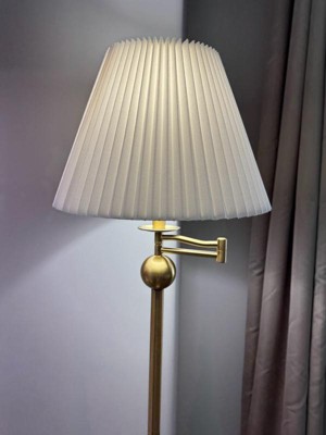 [This review was collected as part of a promotion.] I’m really happy with this floor lamp! The design is elegant, featuring a white accordion-style drum shade that gives off a soft, warm glow, and a sleek brass base and pole that add a touch of sophistication to my space. It fits perfectly with my vanity setup and complements the overall decor beautifully. The lamp comes with a base and three tubes that screw together easily, and I had it fully assembled in under five minutes without any tools. The adjustable arm is a fantastic feature, it extends or folds in so I can direct the light exactly where I need it, whether I’m reading on the sofa or working at a table. This lamp is both stylish and practical. Highly recommend if you’re looking for something modern, versatile, and easy to set up.