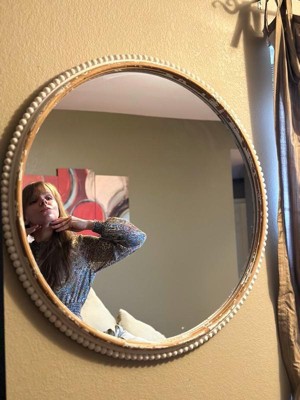 - BEADED FRAME: This coastal wall mirror features antique white beaded accents paired with a vintage-style wooden frame. The intricate beadwork perfectly complements the warm tones of the natural wood, creating a charming focal point for any wall