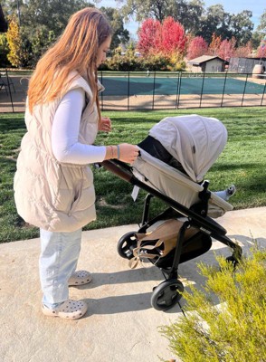 Wow, I really love this stroller!! Thanks to the Stellar Product Testing Panel for providing me with this stroller. We own two other brand strollers and this is easily my new favorite. It is so light and easy to maneuver. I absolutely love that the seat provides four modes including the infant bassinet option. Although our baby prefers sitting up in the seat we have been able to use the carriage for naps and she is cozy as can be. Transitioning from position to position is seamless. Not to mention how nice it will be not have to store a bassinet attachment. The canopy is great for sun and I also foresee it helping with bugs in the summer. I love how it extends the entire way down. The seat cushions are very comfortable and such a nice touch to offer two fabrics based on the weather. The color palette was very neutral but chic at the same time. We have the desert wonder color. Overall, I would recommend this stroller to anyone looking for advice on which stroller to choose for their registry. One con we had, was opening the stroller seemed difficult. Don't give up though, once you know how it's easy!
