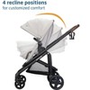 - Multiple modes of use: stroller seat instantly converts to a lie-flat carriage and both are reversible for parent- or world-facing views