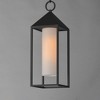 A refreshing take on classic outdoor lanters, this collection features a pyramid capped top with Satin White glass hurricanes housed within. No additional panels of glass are used to frame the lantern, providing an attractive, low maintenance look for outdoors. Material: Aluminum, Finish Color: Black, Width: 7", Height: 20.75", Length: 7", Lamping Type: Incandescent, Number Of Bulbs: 1, Wattage: 60 Watts, Dimmable: Yes, Moisture Rating: Damp Rated