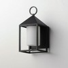 A refreshing take on classic outdoor lanters, this collection features a pyramid capped top with Satin White glass hurricanes housed within. No additional panels of glass are used to frame the lantern, providing an attractive, low maintenance look for outdoors. Material: Glass, Finish Color: Black, Width: 6", Height: 13.25", Length: 6", Depth: 6.75", Height From Outlet Box: 8.75", Backplate Width: 6", Backplate Length: 6.25", Lamping Type: Incandescent, Number Of Bulbs: 1, Wattage: 60 Watts, Dimmable: Yes, Moisture Rating: Wet Rated