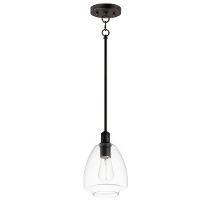 Pendants of Clear glass in unique elongated and undulating shapes with various sizes. This series pairs well with popular finishes in hardware and plumbing, giving you the flexibility to take chances with designer statement pieces. The metalwork is available in your choice of Matte Black, Satin Brass, or Satin Nickel. A coordinating wall sconce pairs well with the collection. Use filament bulbs to complete the look. Canopy Included: Yes Canopy Diameter: 5.00 Sloped Ceiling Adaptable: Yes Dimmable: Yes Shade Included: Yes Shade Dimensions: 8.25