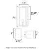 An elongated rectangular shaped design that is both minimalist and industrial. Die cast frames of Dark Bronze support Clear glass panels that provide an unobstructed view of the lantern's interior. Customize with your choice of lamps from vintage to tubular. Material: Aluminum, Finish Color: Dark Bronze, Width: 6", Height: 17.5", Depth: 7.5", Height From Outlet Box: 11.25", Backplate Width: 4.75", Backplate Length: 8", Lamping Type: Incandescent, Number Of Bulbs: 1, Wattage: 60 Watts, Moisture Rating: Wet Rated
