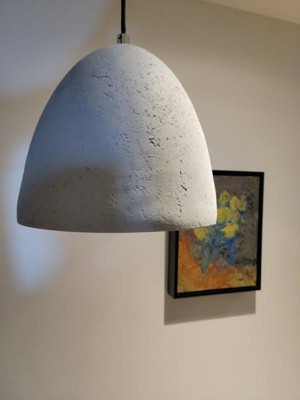 [This review was collected as part of a promotion.] Maxim's Crete pendant is a handsome, sturdy fixture with great appeal and plenty of heft. There's ample room to fit a variety of different fixtures in the standard socket inside and the chromed ceiling plate and heavy duty power cord wrapped in black fabric offer a refined look that compliments the concrete appearance of the shade itself.