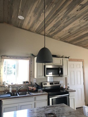 [This review was collected as part of a promotion.] I have vaulted blue pine wood ceilings in my kitchen/dining room and a hanging light fixture right in the middle of the room over my kitchen island. I’ve been searching for the perfect light fixture as a this light is truly right in the middle of this high traffic area of the house. I am in love with this Maxim Lighting Crete pendant! It is so unique and high quality- the perfect centerpiece for the room. The concrete finish is just interesting and the color goes really well with the cool wood tones of the ceiling. I am very happy with this addition to my kitchen/ dining space!