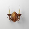 One of our most popular collections, Elegante combines lighting with decorating. Delicate leaves and crystals top the wrap-around vines. Offered in Etruscan Gold or Oil Rubbed Bronze. Mounting Direction: Up Back Plate Height: 7.50 Back Plate Width: 4.50 Dimmable: Yes Material: Steel, Finish Color: Etruscan Gold, Width: 12", Height: 9.5", Length: 6.5", Depth: 6.5", Backplate Width: 4.5", Backplate Length: 7.5", Lamping Type: Incandescent, Number Of Bulbs: 2, Wattage: 60 Watts, Dimmable: Yes, Moisture Rating: Damp Rated