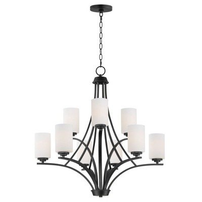 Fluted Satin White glass flares outward from an intricate and thin arm. The contrasting Natural Aged Brass and Matte Black finish adds character to the simple and stately fixtures that easily transition from modern and more traditional spaces. Material: Steel, Finish Color: Black/Natural Aged Brass, Width: 32", Height: 17", Length: 32", Lamping Type: Incandescent, Number Of Bulbs: 10, Wattage: 60 Watts, Dimmable: Yes, Moisture Rating: Dry Rated