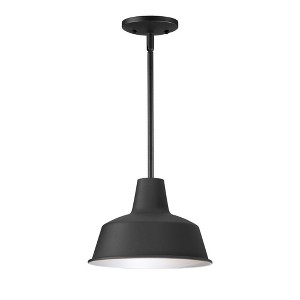 [This review was collected as part of a promotion.] This pendant light would work well with many styles, including the farmhouse style that we were going for on our covered porch space. The black has a textured, matte coating and does not look like shiny metal with white inside. The product was packaged carefully and installation was as expected.