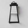 Contrasting louvered insets are set within Matte Black trapezoidal frames. The frames are made of Vivex so their finish will withstand harsher climates. The louvered panel insets are made of aluminum and feature a full cut-off design aesthetic making this design suitable for Dark Sky applications. An added benefit is the removal of glass altogether, adding a robust quality to the construction of the fixtures leading to longevity and lower maintenance. These wide plank louver panels complement the design's coastal styling adding interest in contrasting Weathered Zinc or White options, while the matte Black finish blends into the frame for a cleaner, more seamless approach.