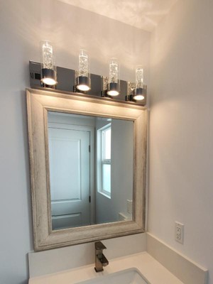 Rods of bubble glass are encased inside a Clear glass cylinder, which are supported in a cast Polished Chrome frame. Dual LED modules bring the bubble glass to life, while also providing ample illumination to the surface below. Mounting Direction: Up/Down Back Plate Height: 5.00 Back Plate Width: 27.00 Dimmable: Yes Shade Included: Yes There are 8 total lights (4 up and 4 down lights)