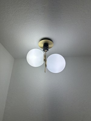 [This review was collected as part of a promotion.] Maxim's Vesper Semi Flush Mount 2 lite fixture is an unusual and interesting light. We installed it in our dining room, and it looks great! The combination of satin brass, black marble and large satin white globes makes a perfect setting. It was no problem installing and it is sure to bring many comments from guests :)