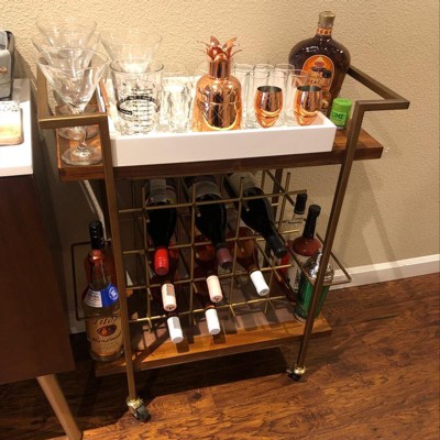 This is such a cute cart! It fits perfectly in my home. The only complaint is that the gold isn’t as bright as pictured but it works for me!