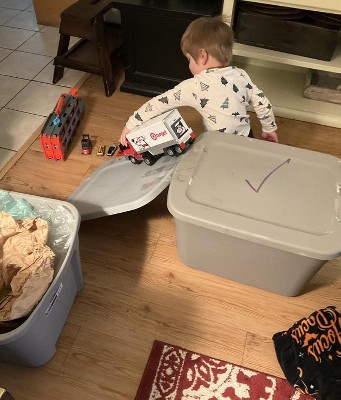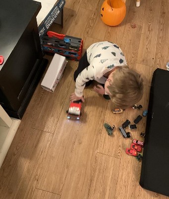 A: Jackie, thank you for your question! We recommend the Maxx Action Target Truck and Forklift for children ages 3 and up, as it contains small parts that could pose a choking hazard for younger children.We always recommend adult supervision during play to ensure safety.