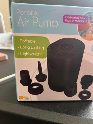 This little air pump is absolutely perfet during the summer. Its small to go in my beach bag and not heavy at all, I use it to inflate my pool floats & within secinds they are ready to go! so happy I ordered this!