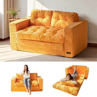 MAXYOYO 3-Seater Floor Couch, Boneless Sofa Couch for Living Room Bedroom Apartment, Sofa in a Box, No Assembly Needed, Orange