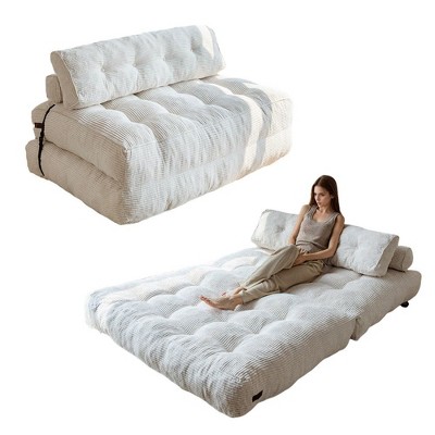MAXYOYO Folding Sofa Bed, L-Shaped Two-Seat Convertible Sofa Bed with Armrest and Pillows for Living Room Bedroom