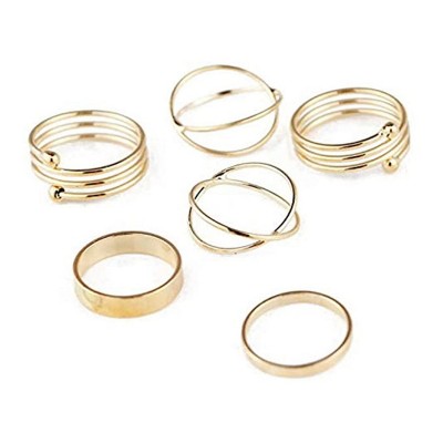Product Name: Maya's Grace Stackable Midi and Knuckle Rings Set for Women, 6-Piece Boho Aesthetic Jewelry in Gold and Silver - Gold