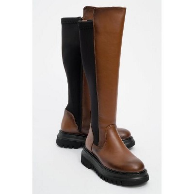 Maybe Boots from Prologue Shoes by Forever & Always Shoes make a bold statement with their contemporary design and dependable comfort. Crafted from high-quality faux leather, they feature a streamlined shaft and pointed toe silhouette complemented by a sturdy 7 cm (approximately 2.76 inches) block heel—offering both style and stability.