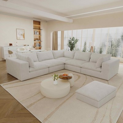 MAYEERTY 107" Cloud L-Shape Sofa Black - 107" L-Shape, Corduroy, Deep Seat, No Assembly, for Living Room