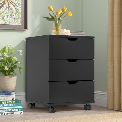 MAYEERTY 3-Drawer Vertical Wood Filing Cabinet - With Casters, Non-Assembled for Home Office (Black)