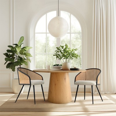 - This dining chair set is equipped with backrest for a strong comfortable back support. Plenty decorative rivet inset around cushion and back not only make it looks noble and elegant but also give the whole chair a feeling of exquisite luxury.