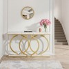 Want to make your foyer stand out? Adorn your home with this gold entryway table¡ªit¡¯s sure to catch everyone's eye! Featuring a chic faux marble veneer (with a smooth, elegant finish) and a captivating geometric gold metal base, it exudes luxury from every angle. This sophisticated console table adds instant glamour to your entryway, leaving a polished, high-end impression on guests the moment they step in. Compact yet stylish, it also works for displaying small decor like a vase or key tray, blending beauty with practicality.