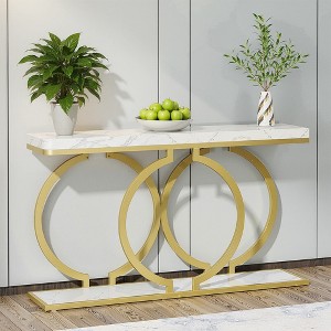 - Plenty of Space - It's not just pretty, with a 55.1"W x 11.8"D tabletop, this console table offers more than enough space for your art decor. Crafted from 1.57" thick MDF with real marble texture, the table is durable, waterproof and easy to clean.