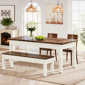 MAYEERTY Dining Set 55in 3 Pieces Wood Kitchen Table with 2 Benches
