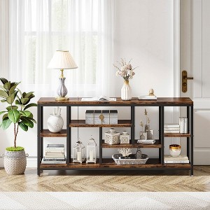 Chic Industrial Console Table - This stylish Tribesigns console table with multi-tiered shelves matches perfectly with modern or industrial decor. Use it to add a pop of color and organization to your space.