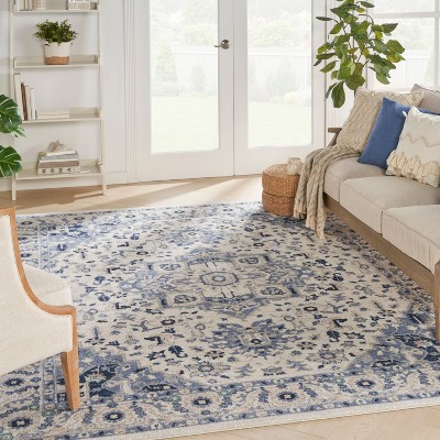MAYEERTY Area Rug Vintage Bohemia Persion Non-slip Washable Rug for Living Room with Flower Design Blue Brown