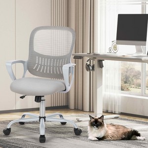 MAYEERTY Ergonomic Mid-Back Office Chair, Lumbar Support Rocking Mode Fixed Armrest