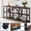 Unique Style Console Table - Our console table, featuring a circular frame, wooden finish, and matte black metal frame, brings a distinct touch to your space, blending farmhouse and industrial styles.