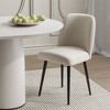 Bring warmth and practicality to your kitchen dining space with the MAYEERTY Beige Dining Chair with black metal legs. Soft beige upholstery creates a cozy, inviting atmosphere¡ªperfect for family meals¡ªwhile sleek black metal legs add a modern edge. The metal legs feature an anti-rust coating to withstand kitchen humidity, and built-in non-slip pads protect your floors from scratches. Easy to assemble and clean, this chair balances comfort, durability, and style, making it a great fit for busy kitchen dining areas.