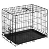 This single-door dog crate is made of durable metal for long-lasting sturdiness, providing a secure space for puppies or small to medium pets to rest and use for daily training; it features a secure lock on the single door to prevent escapes, plus a large opening and low threshold for easy pet entry/exit. Designed for convenience, it has a collapsible structure that folds flat (no tools needed) for easy storage or transport during travel, and comes with a removable bottom tray that catches messes and resists odors¡ªsimply slide it out to wipe or wash for quick cleanup¡ªwhile the metal frame ensures good ventilation to keep the interior fresh for your pet.