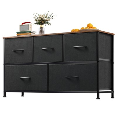 Functional drawer dresser crafted with a solid wooden top and stable metal frame, perfect for organizing bedroom clutter and keeping daily items within easy reach.