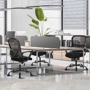 - Mid-back ergonomic desk chair with built-in lumbar support, fixed armrests offer stable upper body support, rocking mode relieves fatigue during long work hours